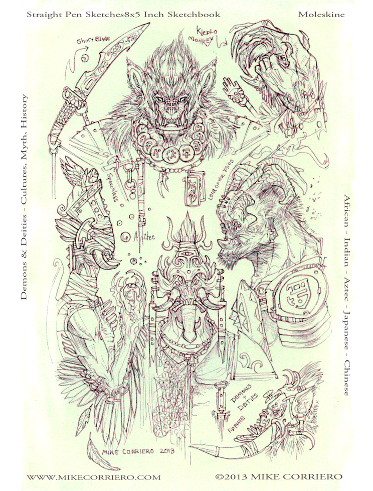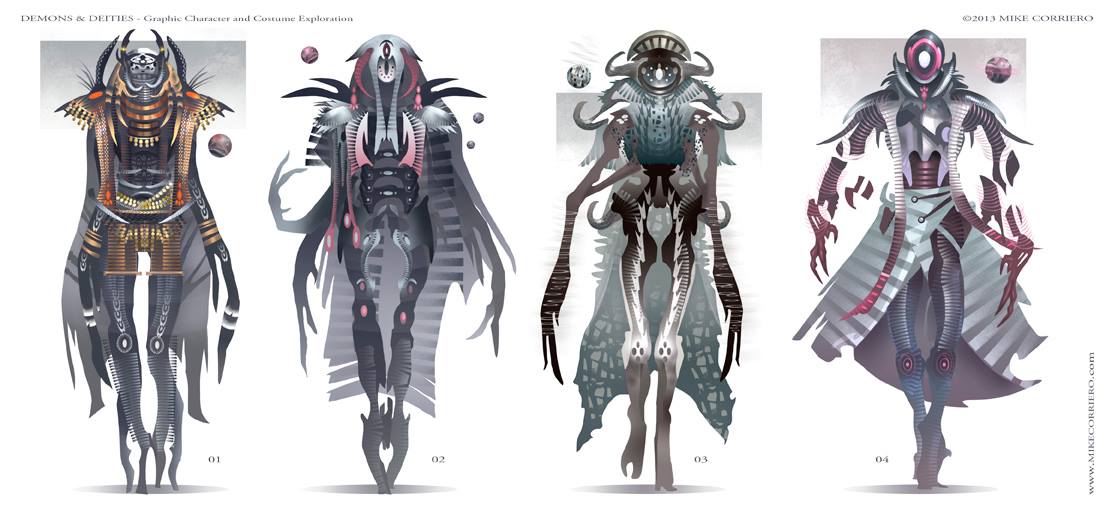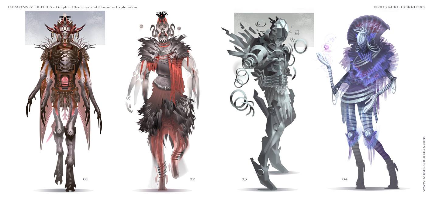 Sometimes you come across work that is hard to categorize – am I looking at a game concept, illustration or an advanced fashion sketch? “Demons and Deities” by concept artist Mike Corriero is reminiscent of a high fashion moodboard, yet operating in a completely different work field.