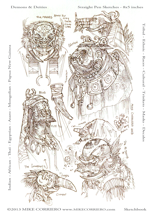 – I used a very different technique to tackle the specific Demons and Deities for this personal project. It involved fashion design as the base and using a lot of real world tribes and various cultures all across the globe as reference. Runway models helped establish the basic lineup and a few of the general silhouettes.